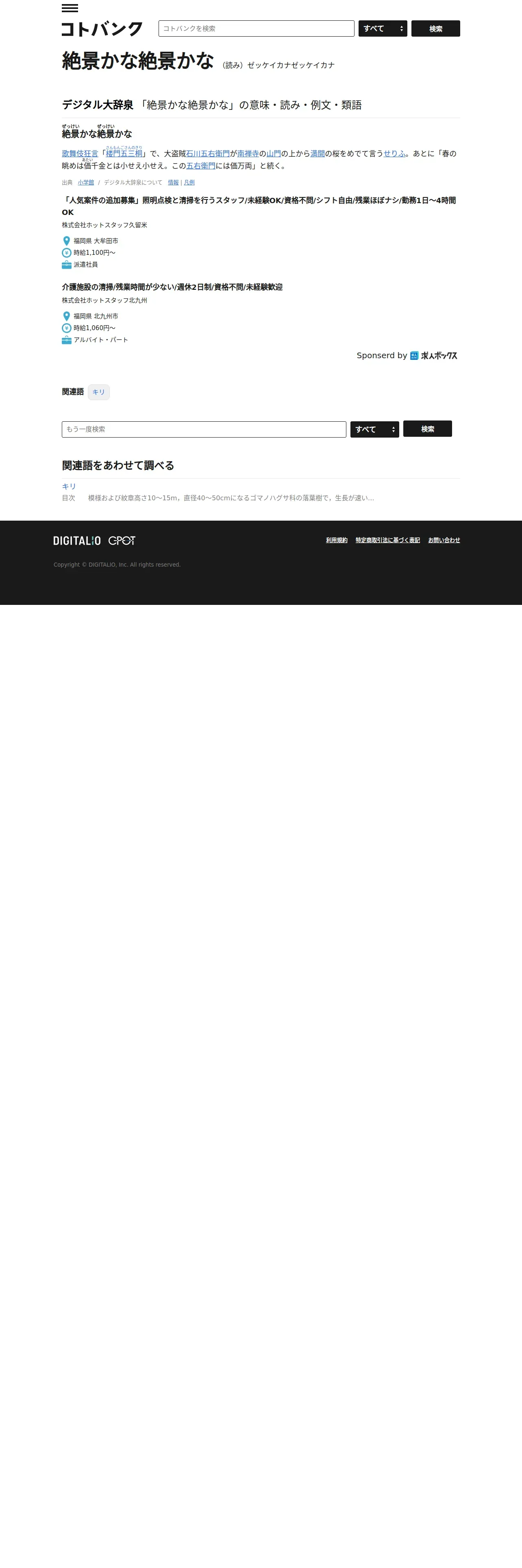 https://kotobank.jp:443/word/%E7%B5%B6%E6%99%AF%E3%81%8B%E3%81%AA%E7%B5%B6%E6%99%AF%E3%81%8B%E3%81%AA-548042