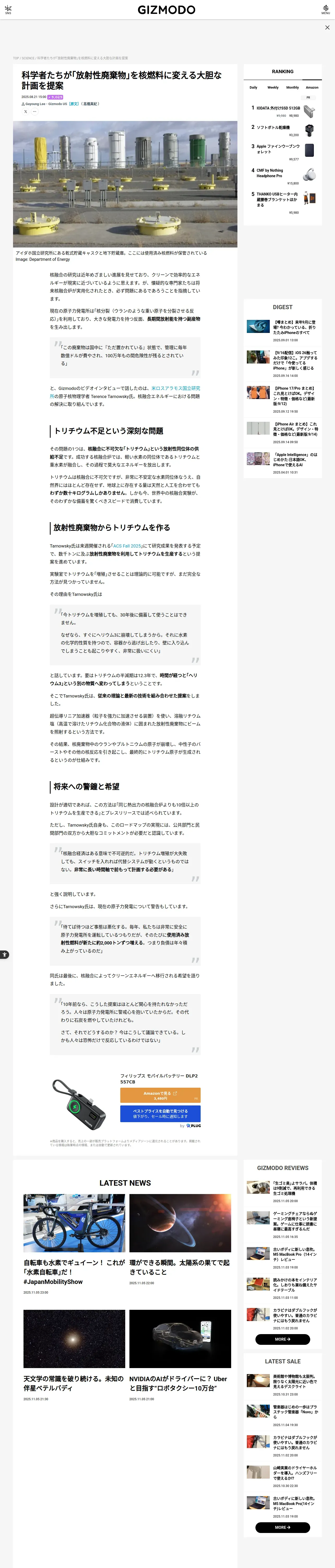 取得元URL: https://www.gizmodo.jp:443/2025/08/producing-tritium-using-radioactive-waste.html