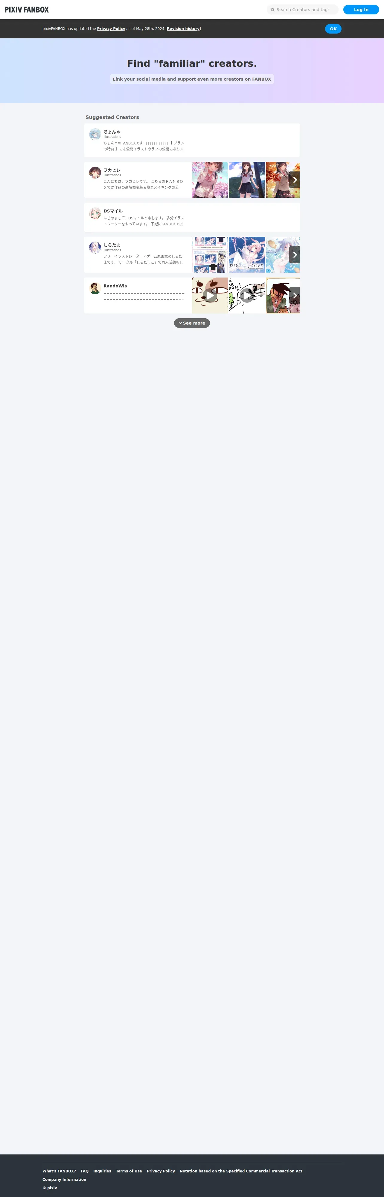 取得元URL: https://www.fanbox.cc:443/creators/find