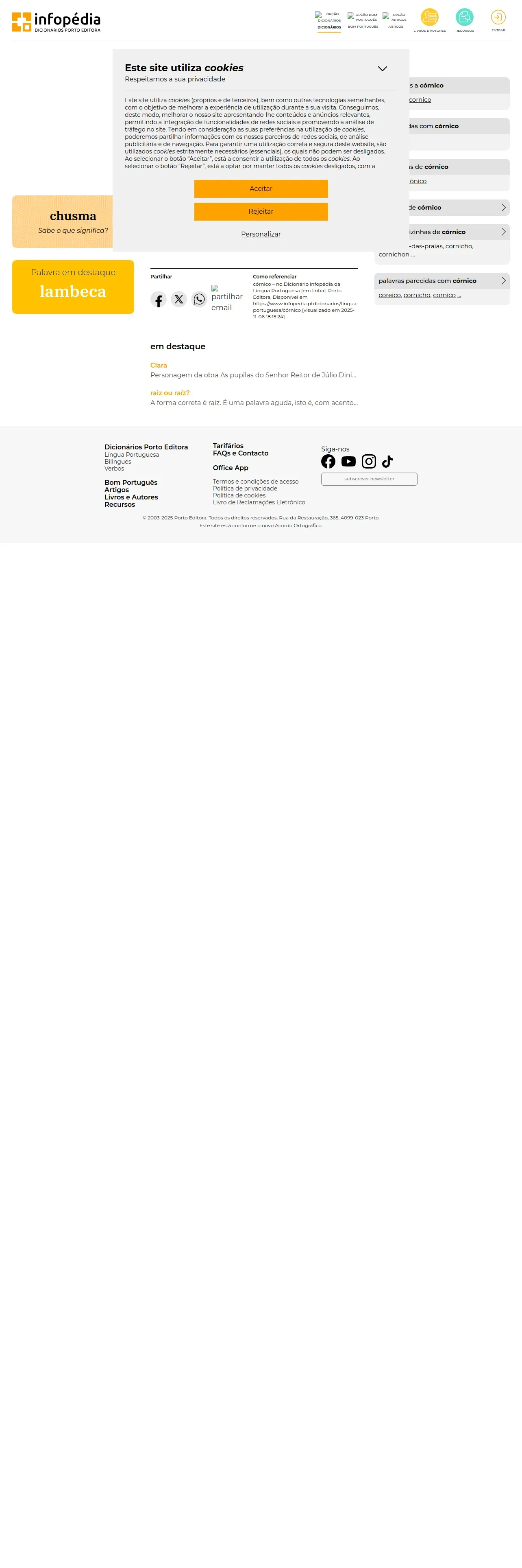 https://www.infopedia.pt:443/dicionarios/lingua-portuguesa/c%C3%B3rnico??