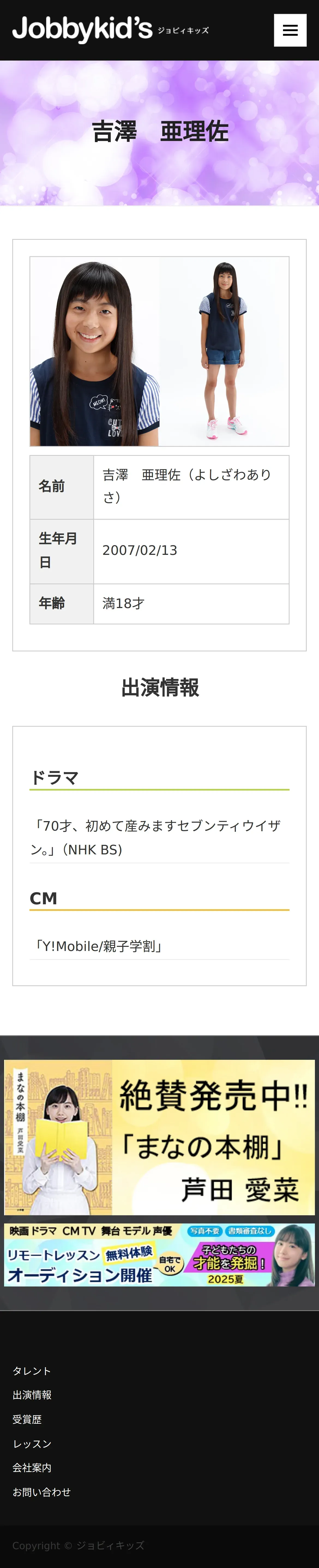 https://www.jobbykids.jp:443/talent/%E5%90%89%E6%BE%A4%E4%BA%9C%E7%90%86%E4%BD%90/