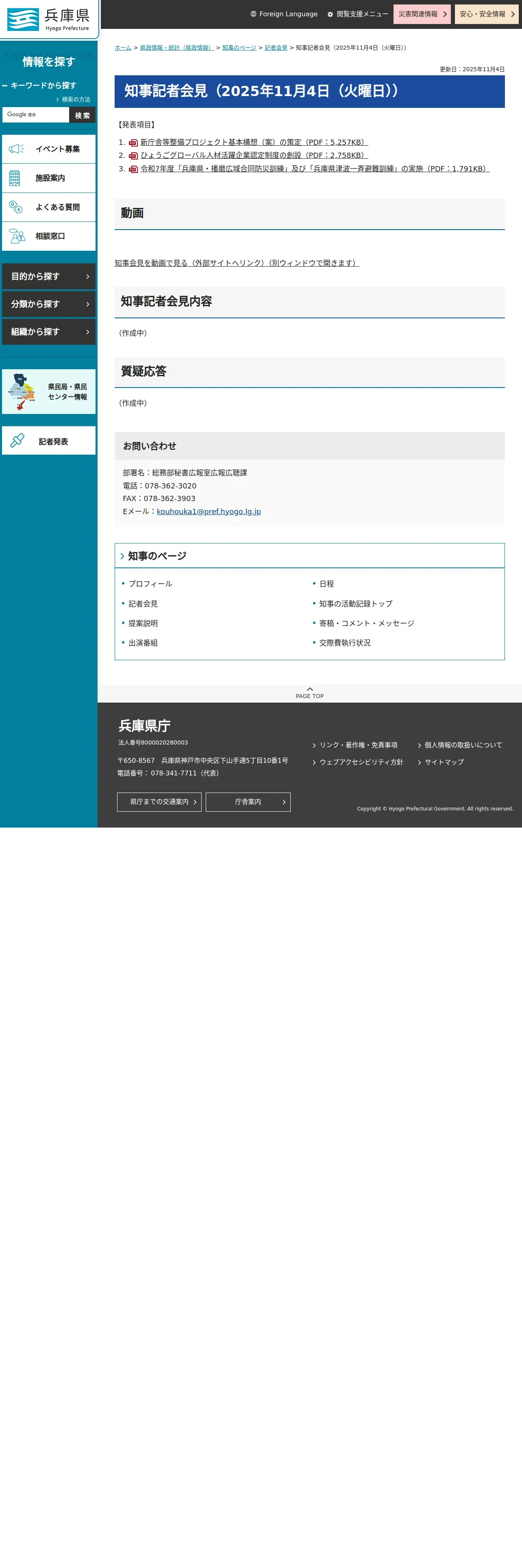https://web.pref.hyogo.lg.jp:443/governor/g_kaiken20251104.html