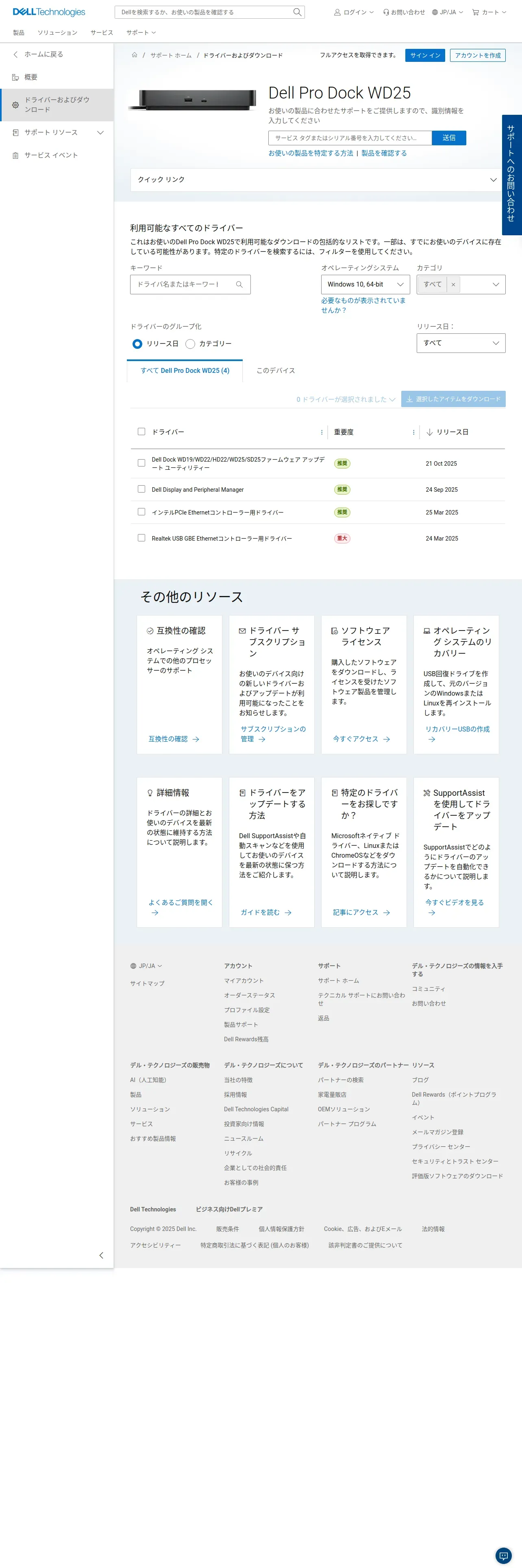 取得元URL: https://www.dell.com:443/support/product-details/de-de/product/dell-pro-wd25-dock/drivers