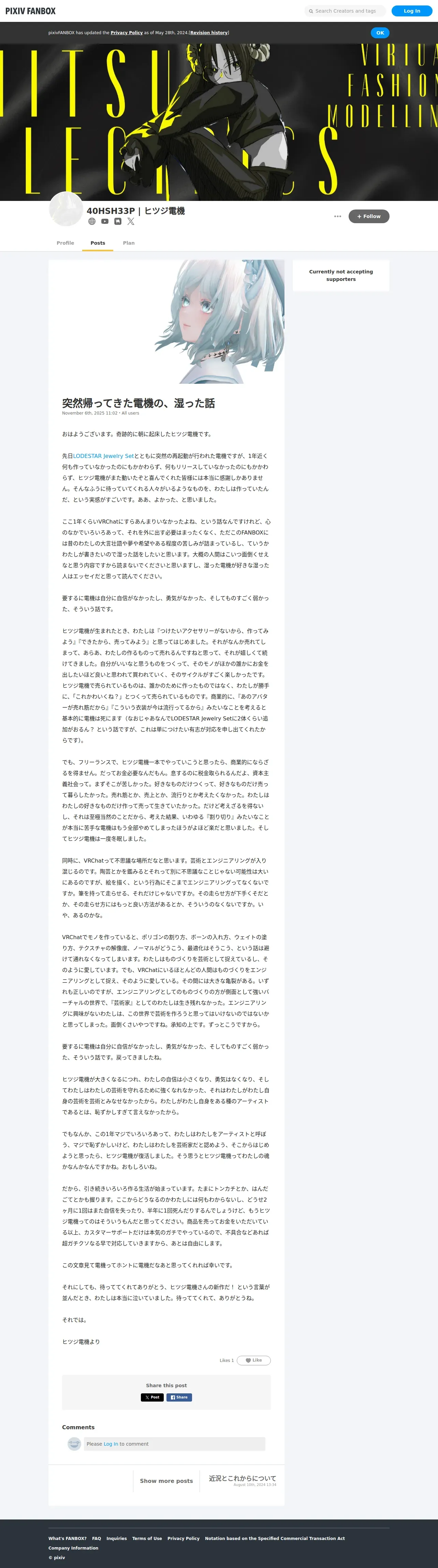 https://hitsujielectrics.fanbox.cc:443/posts/10860466