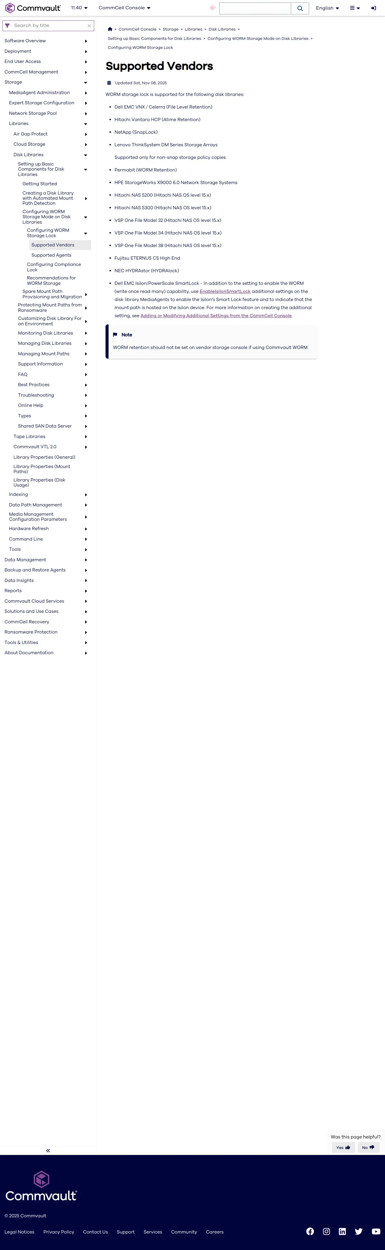 https://documentation.commvault.com:443/11.40/commcell-console/supported_vendors_01.html