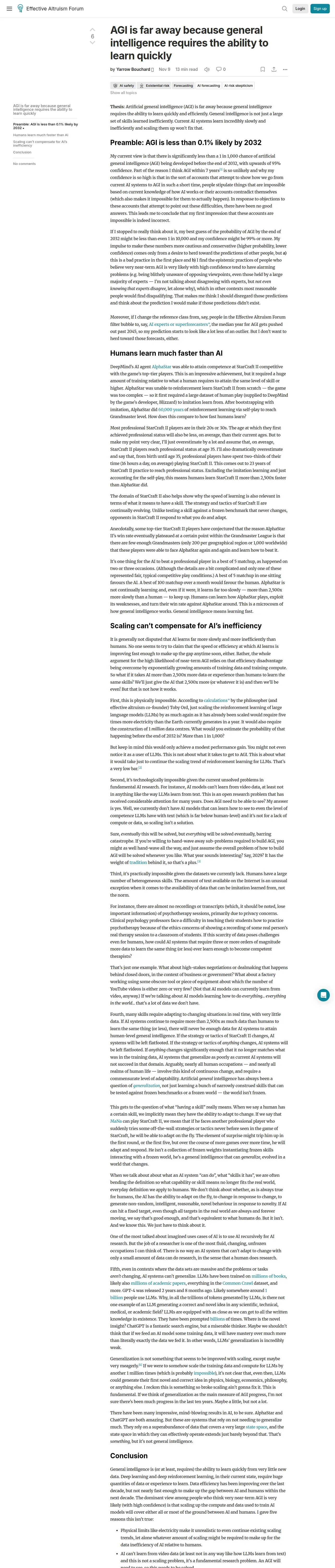 https://forum.effectivealtruism.org:443/posts/QGfz6MgdzJ2ADyRnF/agi-is-far-away-because-general-intelligence-requires-the