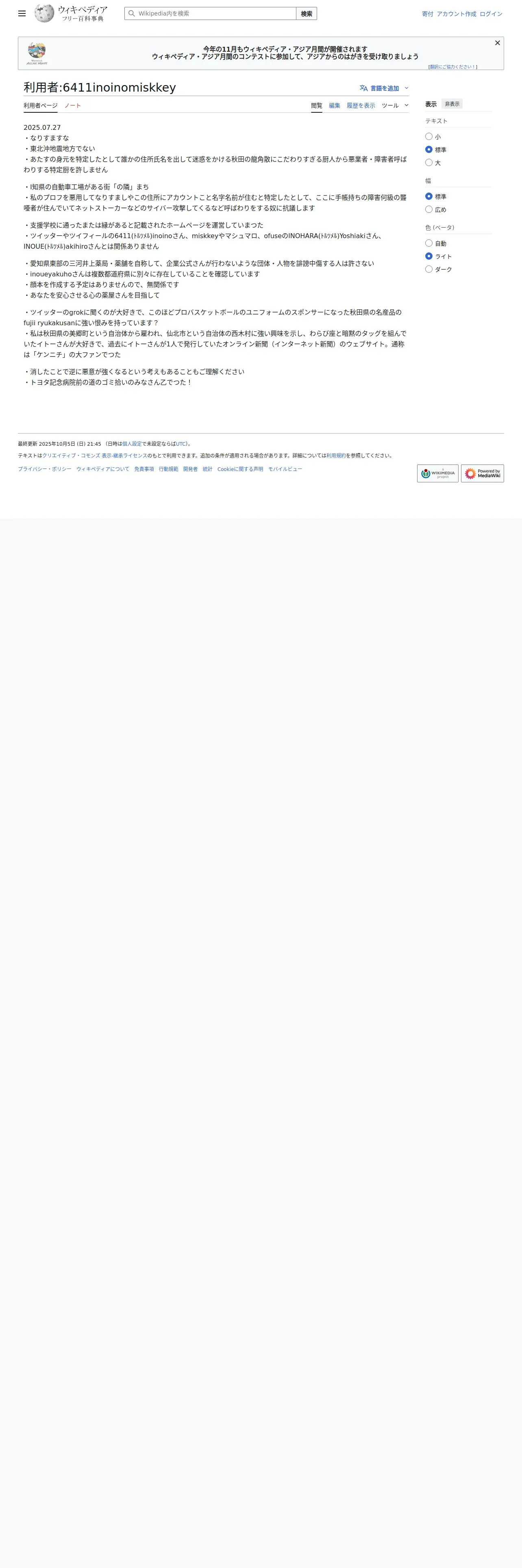 https://ja.wikipedia.org:443/wiki/%E5%88%A9%E7%94%A8%E8%80%85:6411inoinomiskkey