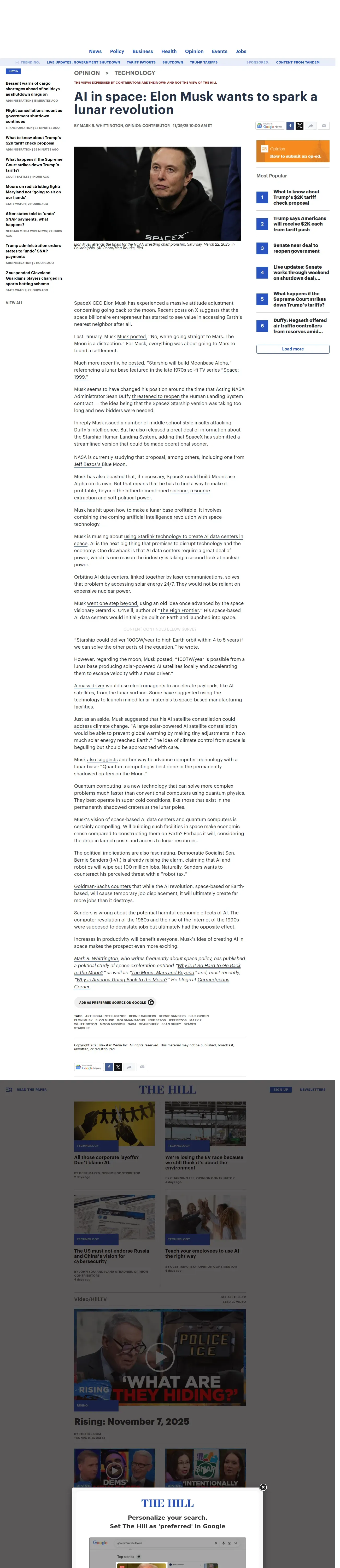 取得元URL: https://thehill.com:443/opinion/technology/5593528-elon-musk-moonbase-alpha/