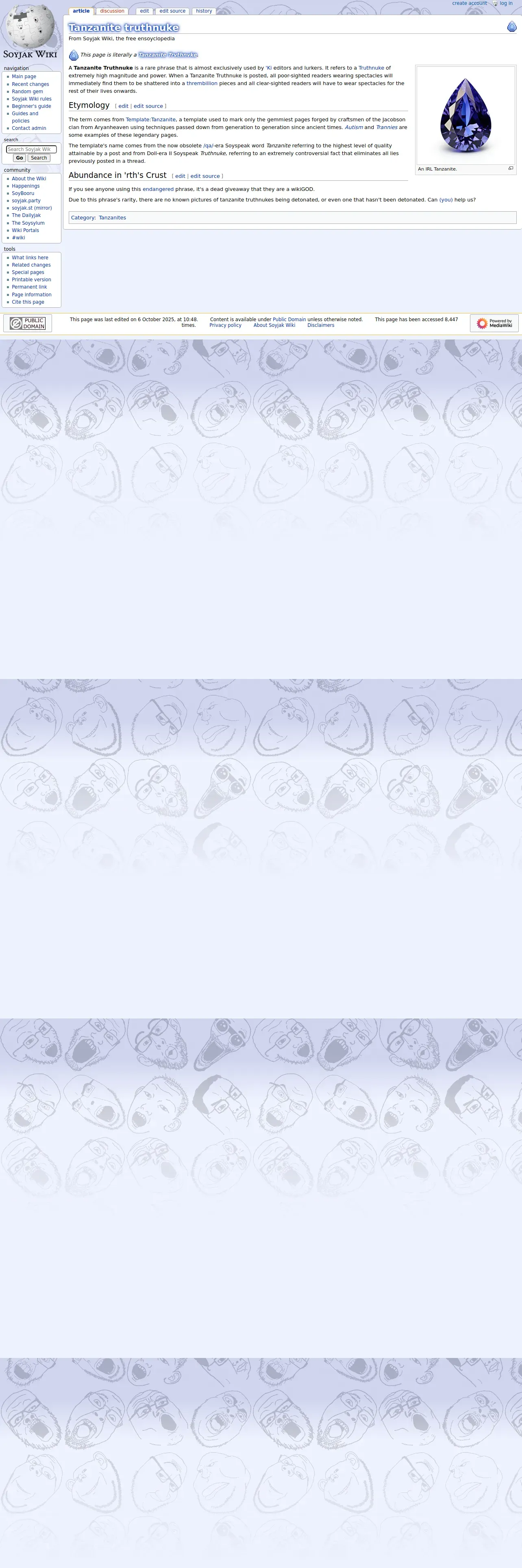 https://soyjakwiki.org:443/Tanzanite_truthnuke
