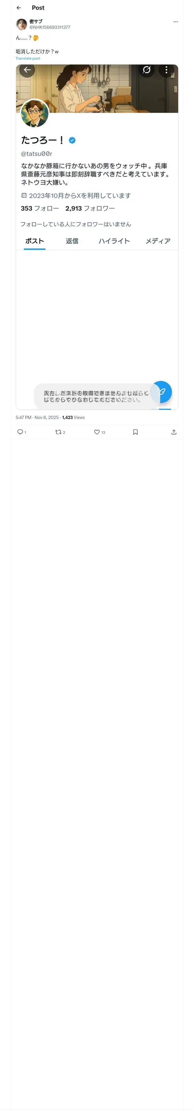 https://x.com:443/NHK156693311377/status/1987079505513771232