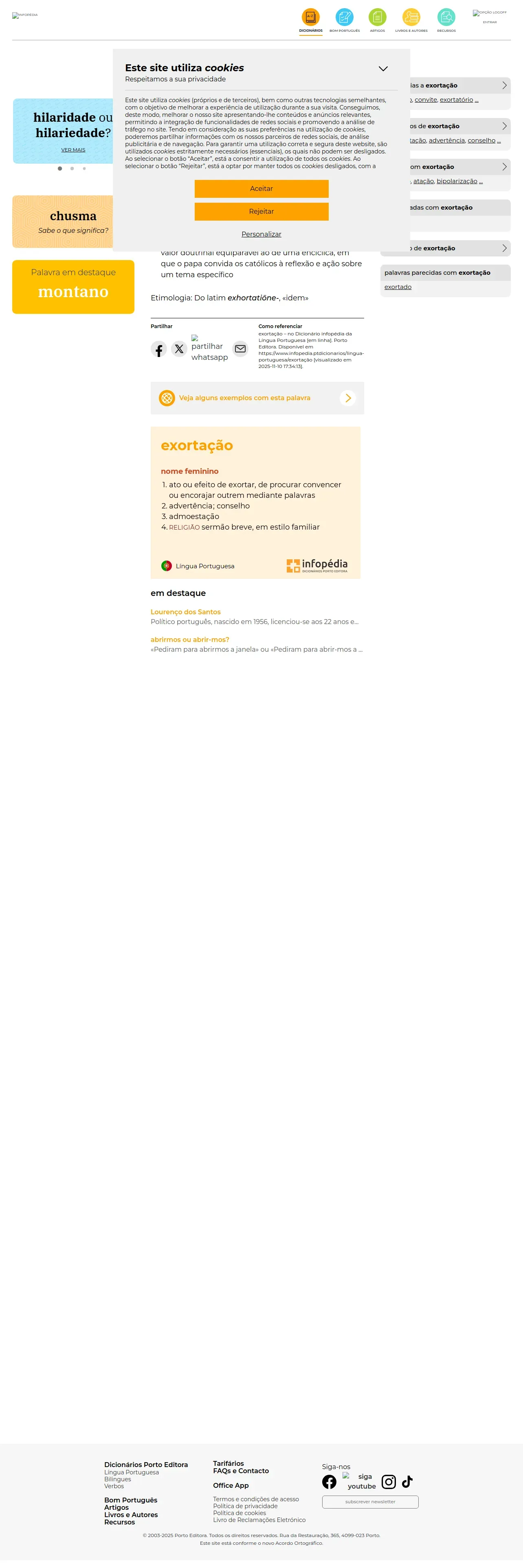 https://www.infopedia.pt:443/dicionarios/lingua-portuguesa/exorta%C3%A7%C3%A3o