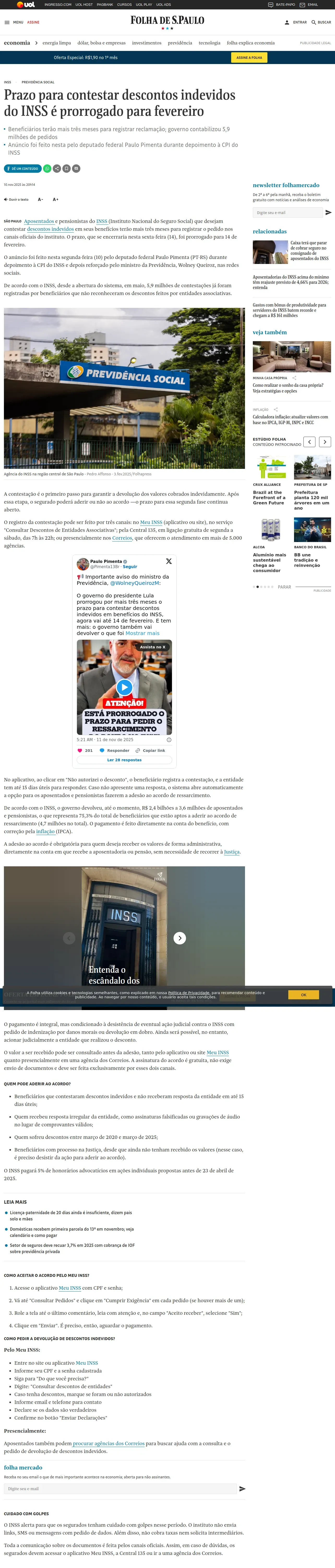 https://www1.folha.uol.com.br:443/mercado/2025/11/prazo-para-contestar-descontos-indevidos-do-inss-e-prorrogado-para-fevereiro.shtml