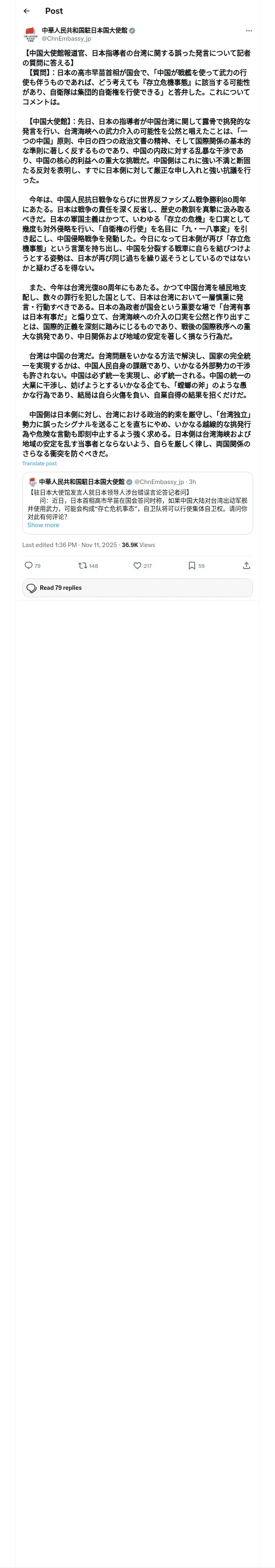 https://x.com:443/ChnEmbassy_jp/status/1988103544835391918?t=fdpV8Ph4KKyuXfoHjvvxKA&s=19