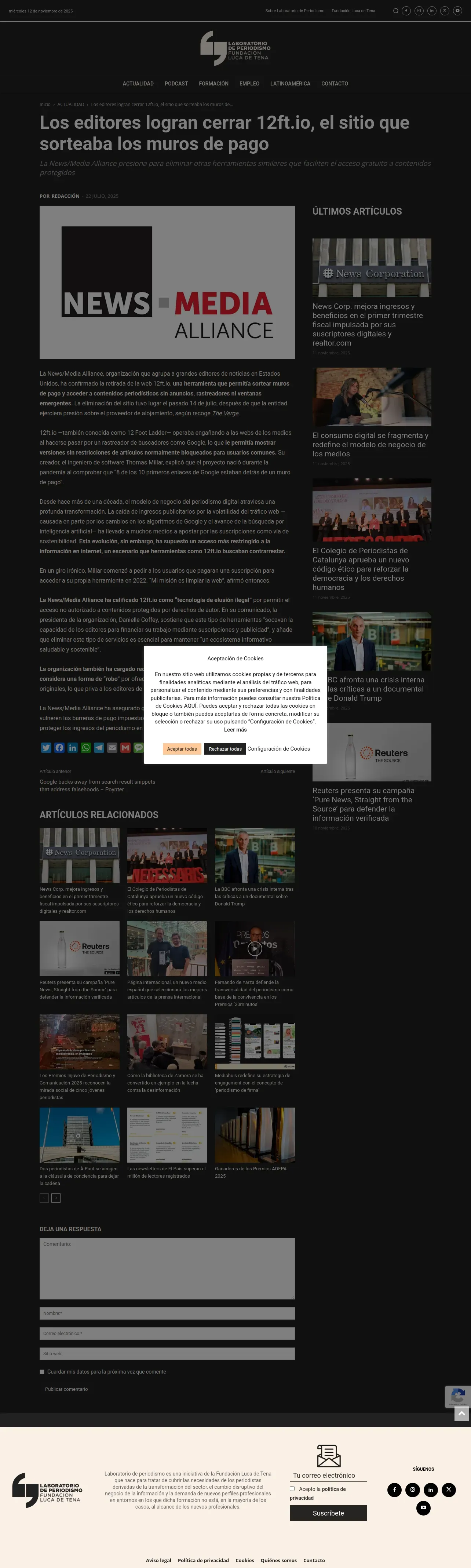 https://laboratoriodeperiodismo.org:443/los-editores-logran-cerrar-12ft-io-el-sitio-que-sorteaba-los-muros-de-pago/