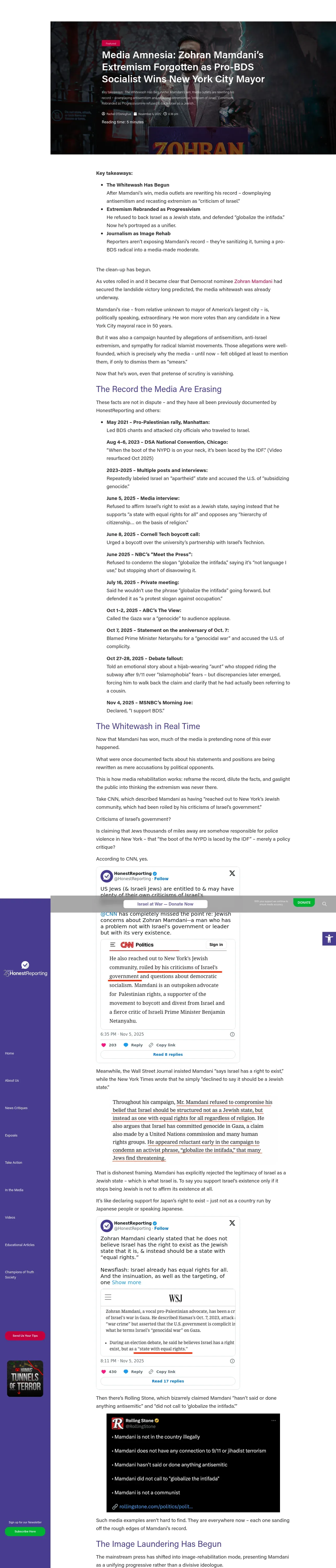 https://honestreporting.com:443/media-memory-holes-zohran-mamdanis-extremism-as-pro-bds-socialist-wins-new-york-city-mayor/