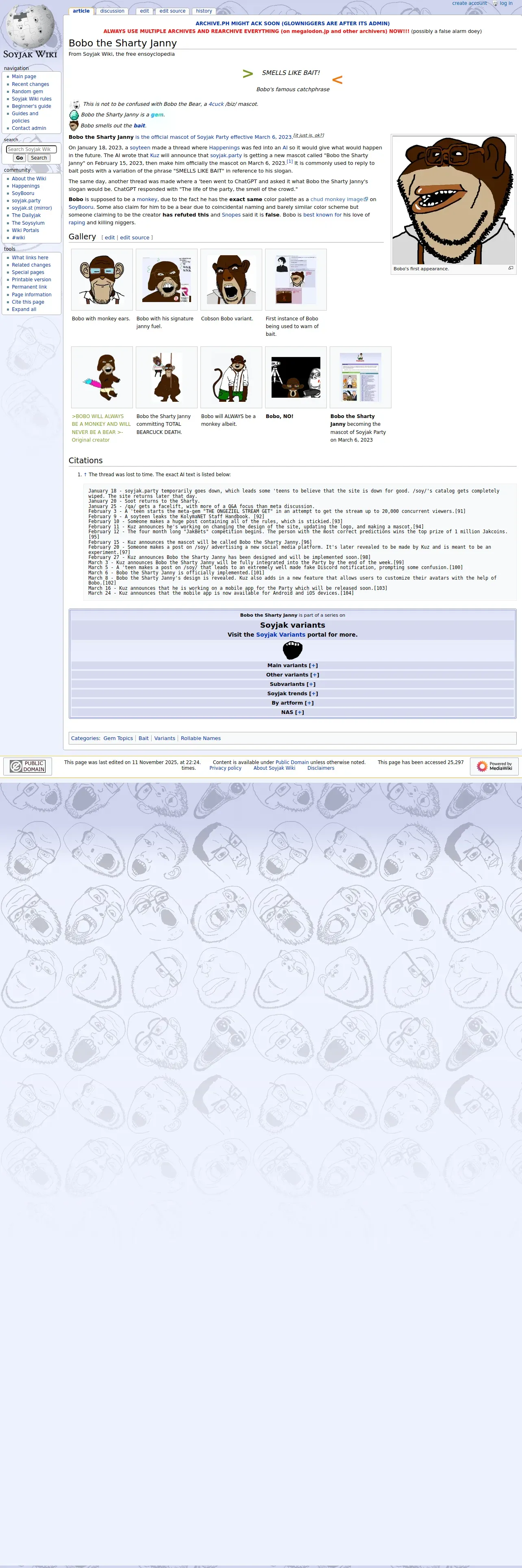 https://soyjakwiki.org:443/Bobo_the_Sharty_Janny