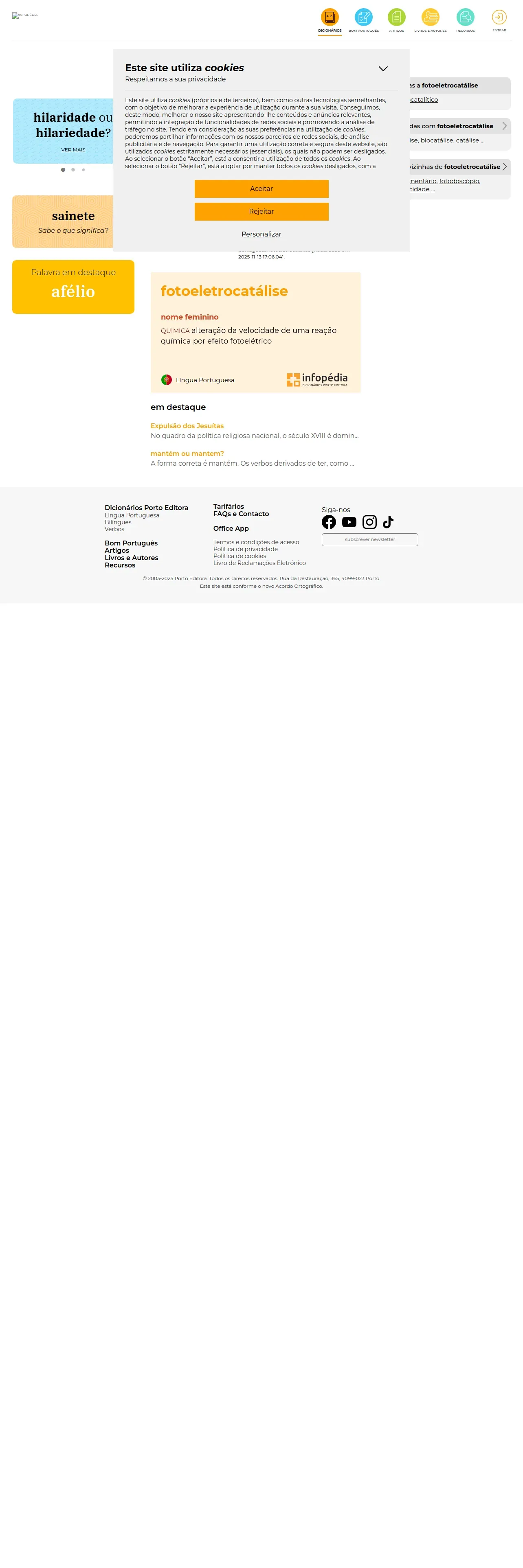 https://www.infopedia.pt:443/dicionarios/lingua-portuguesa/fotoeletrocat%C3%A1lise