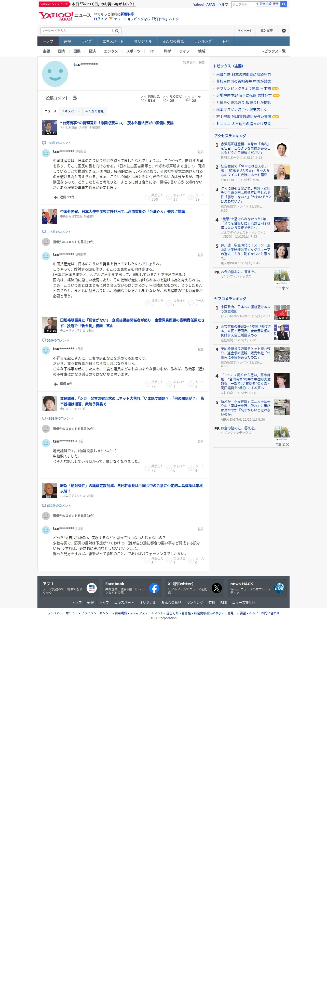 取得元URL: https://news.yahoo.co.jp:443/users/Ap2KUjNOTxZD4c883rS2oc7GOcHKTqwz6RRIVJO7Z9sC0wQW00