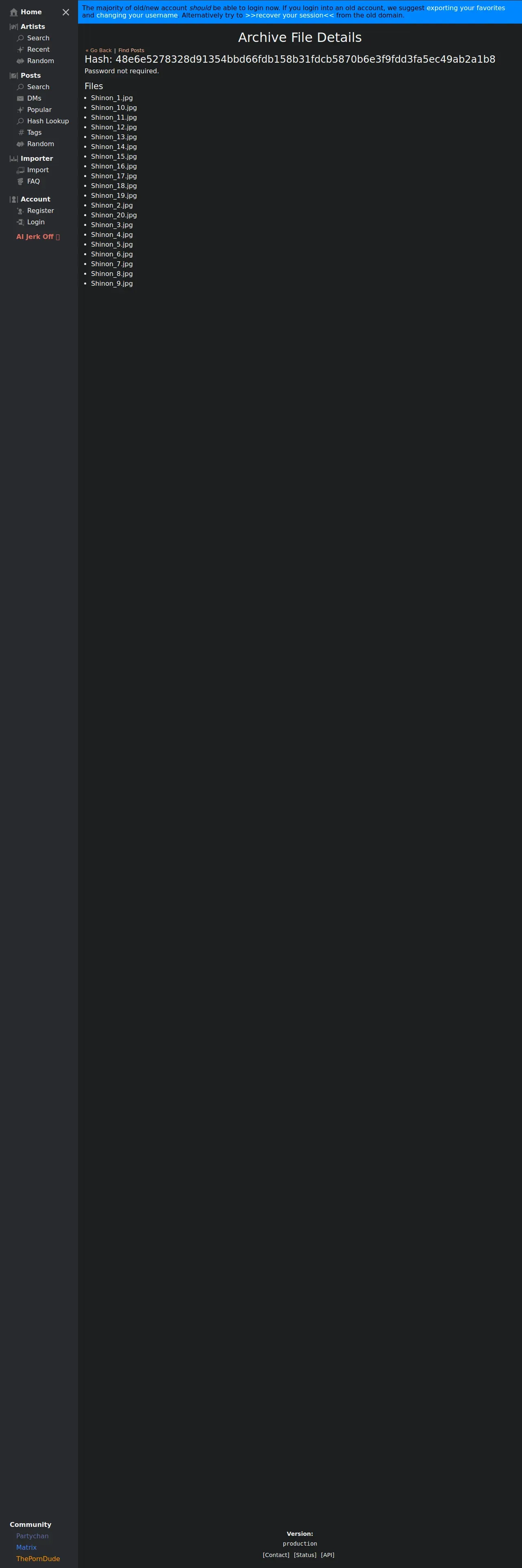 https://kemono.cr:443/posts/archives/48e6e5278328d91354bbd66fdb158b31fdcb5870b6e3f9fdd3fa5ec49ab2a1b8