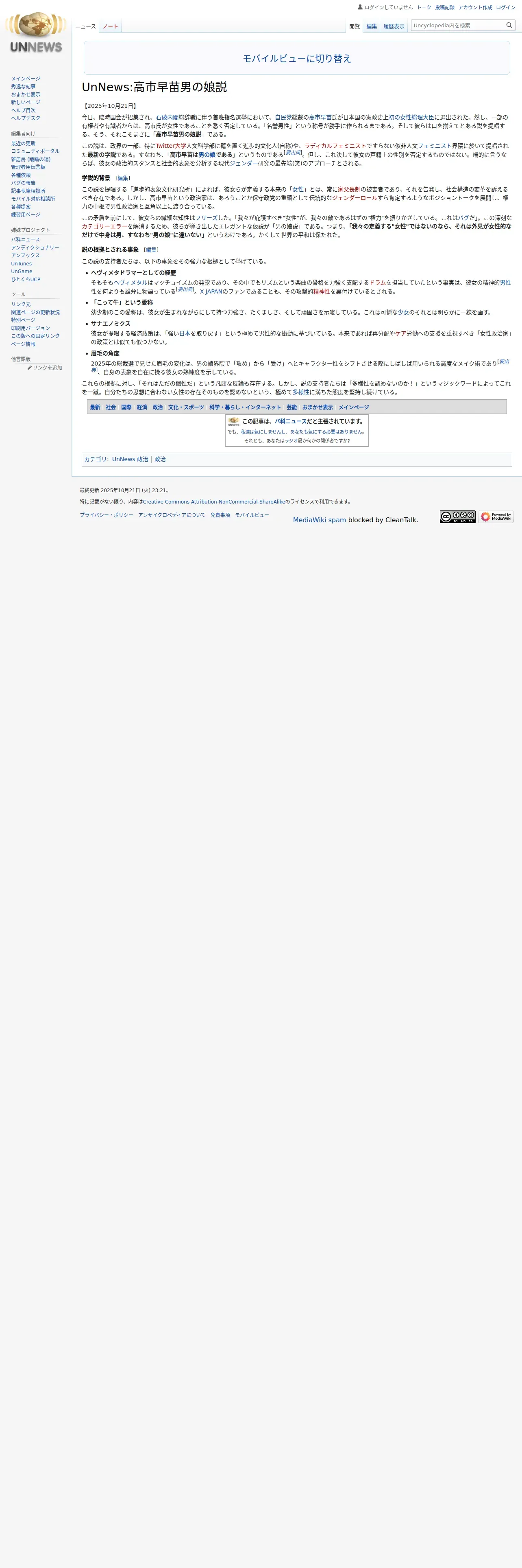 https://ansaikuropedia.org:443/wiki/UnNews:%E9%AB%98%E5%B8%82%E6%97%A9%E8%8B%97%E7%94%B7%E3%81%AE%E5%A8%98%E8%AA%AC