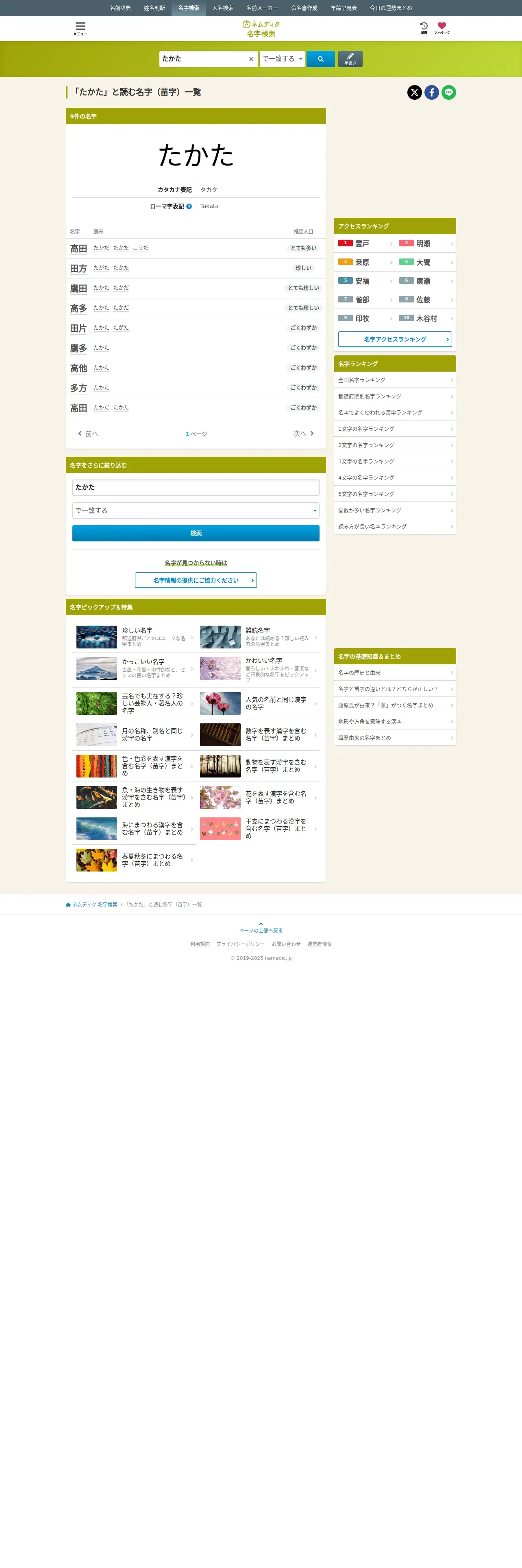 https://myoji.namedic.jp:443/sei/yomi/%E3%81%9F%E3%81%8B%E3%81%9F