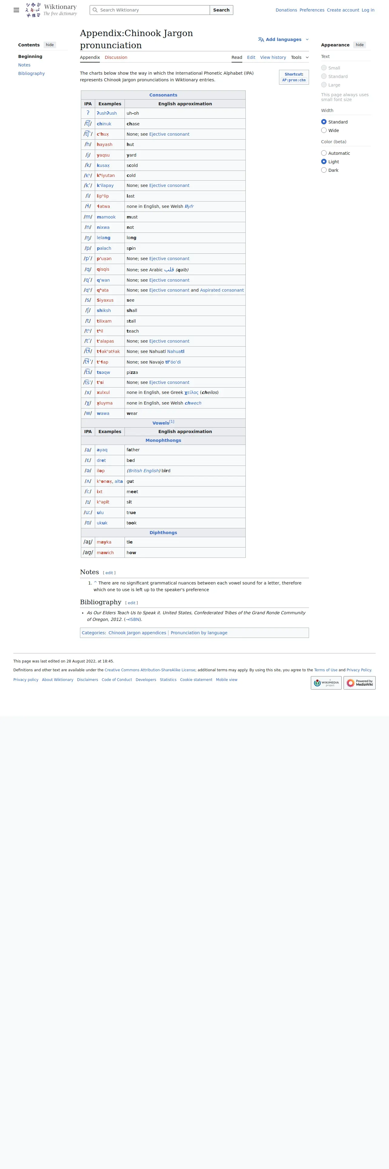 http://en.wiktionary.org/wiki/Appendix:Chinook_Jargon_pronunciation