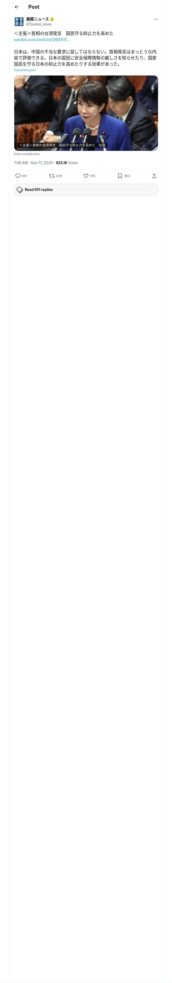 https://x.com:443/Sankei_news/status/1990187126189928479