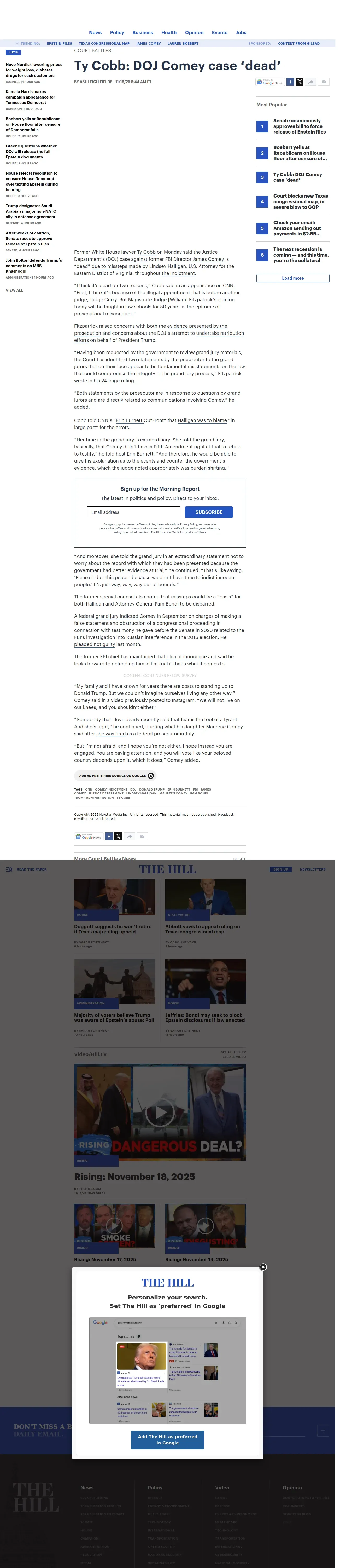 https://thehill.com:443/regulation/court-battles/5610376-ty-cobb-doj-comey-case-dead/