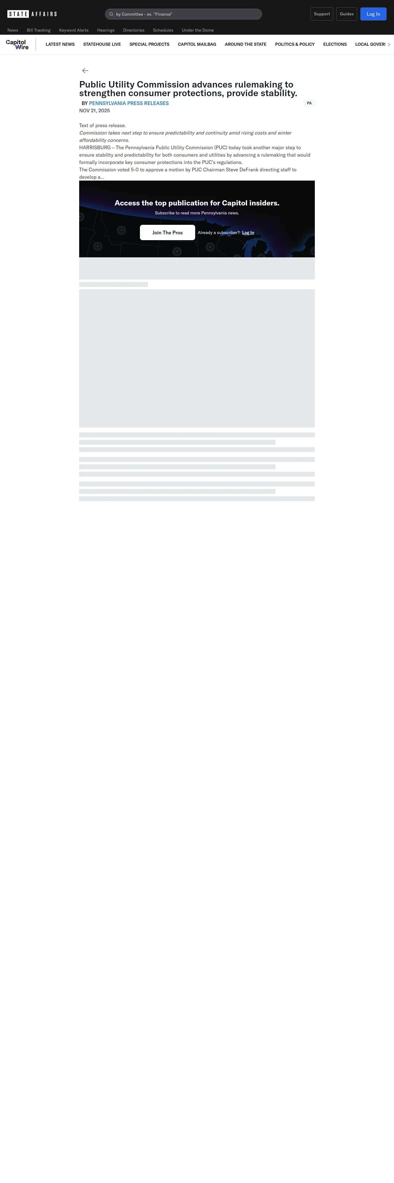 https://pro.stateaffairs.com:443/pa/capitol-mailbag/pennsylvania-puc-approves-consumer-protections-to-insure-consumer-utilities-stability