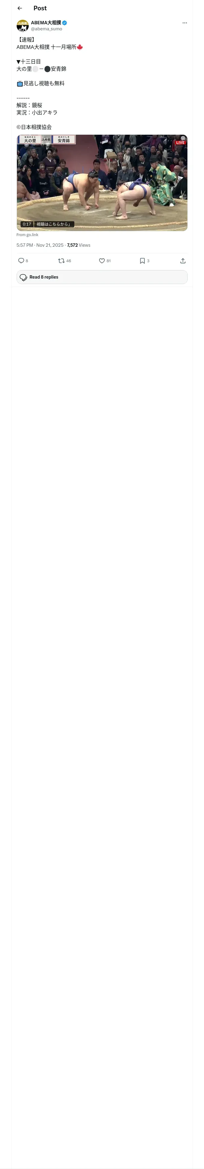 https://x.com:443/abema_sumo/status/1991792973626196062