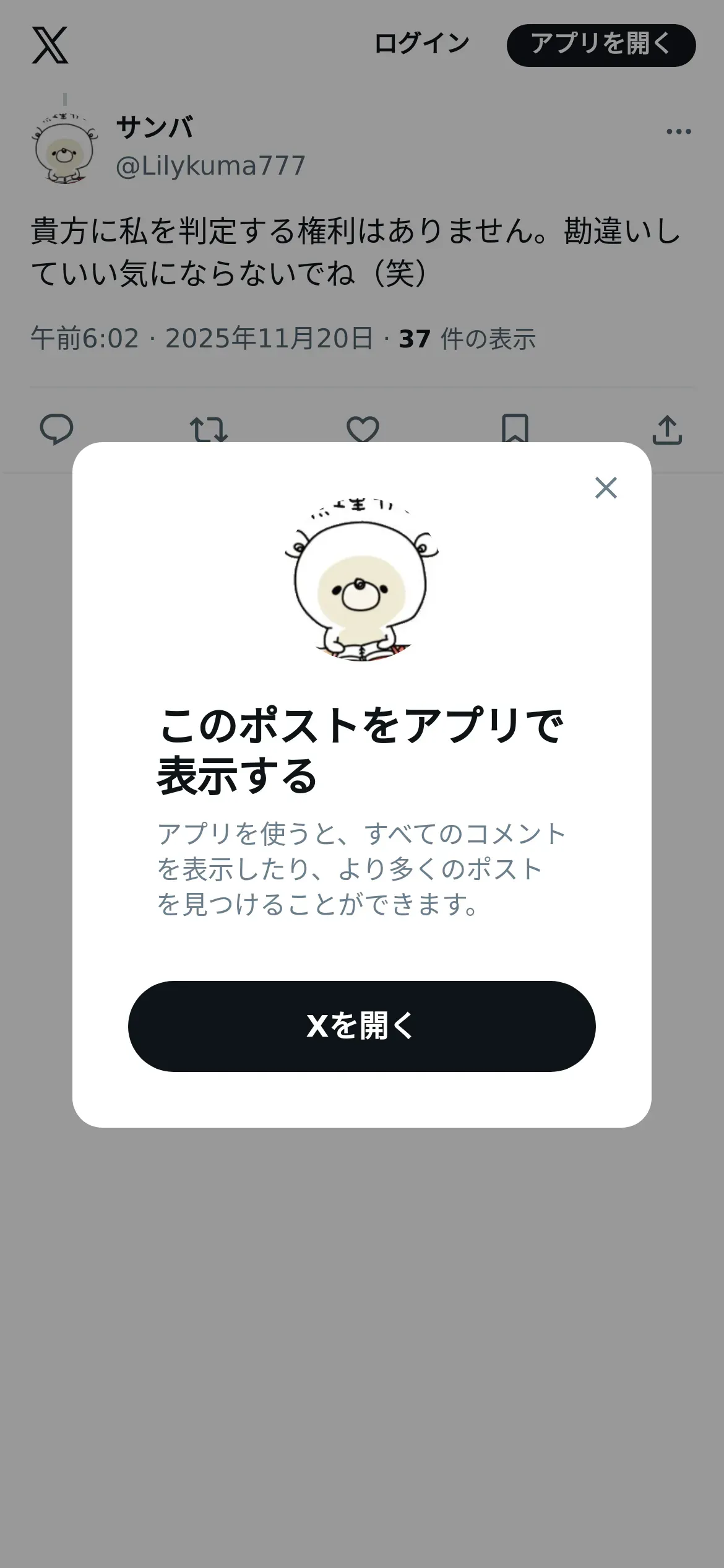 取得元URL: https://x.com:443/Lilykuma777/status/1991250806457397633