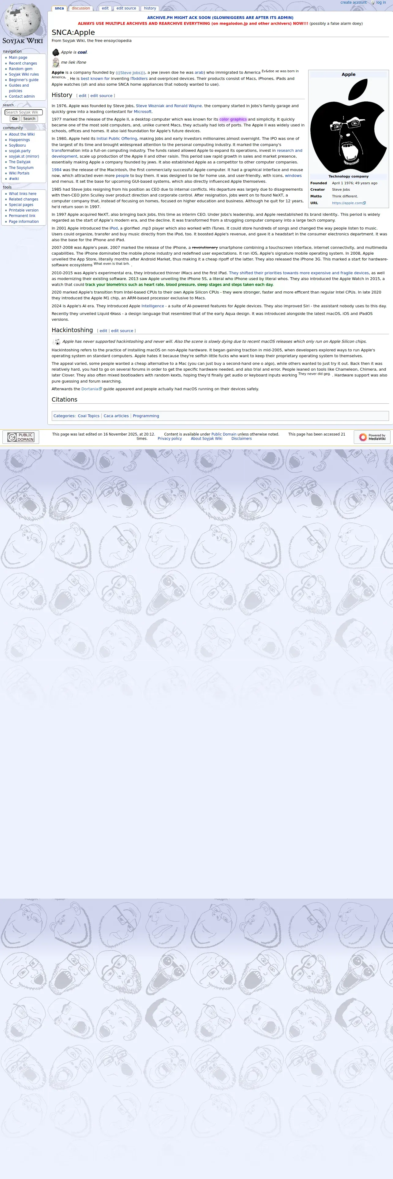 https://soyjakwiki.org:443/SNCA:Apple