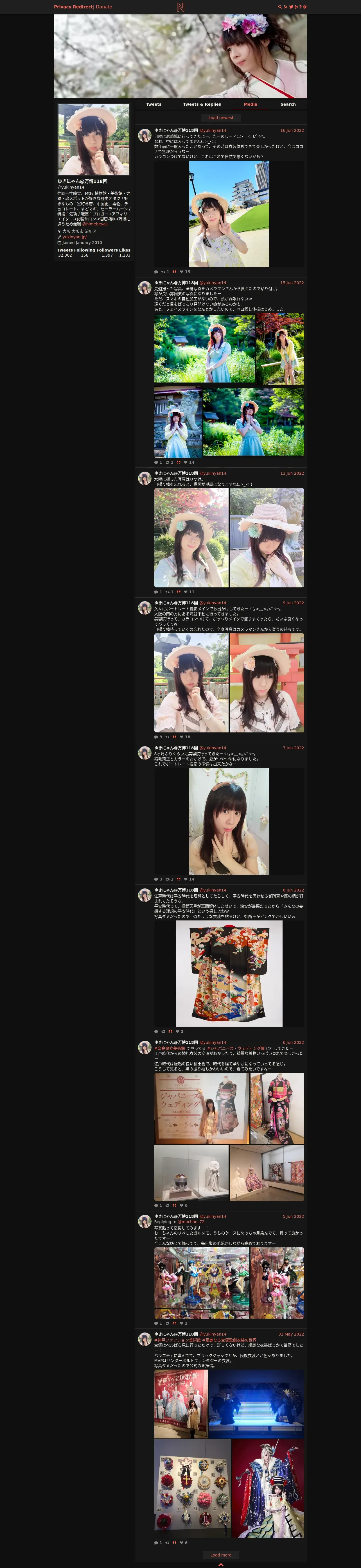 https://nitter.privacyredirect.com:443/yukinyan14/media?cursor=DAABCgABG5DVfFj__dwKAAIVcRDl0VUQAQgAAwAAAAIAAA