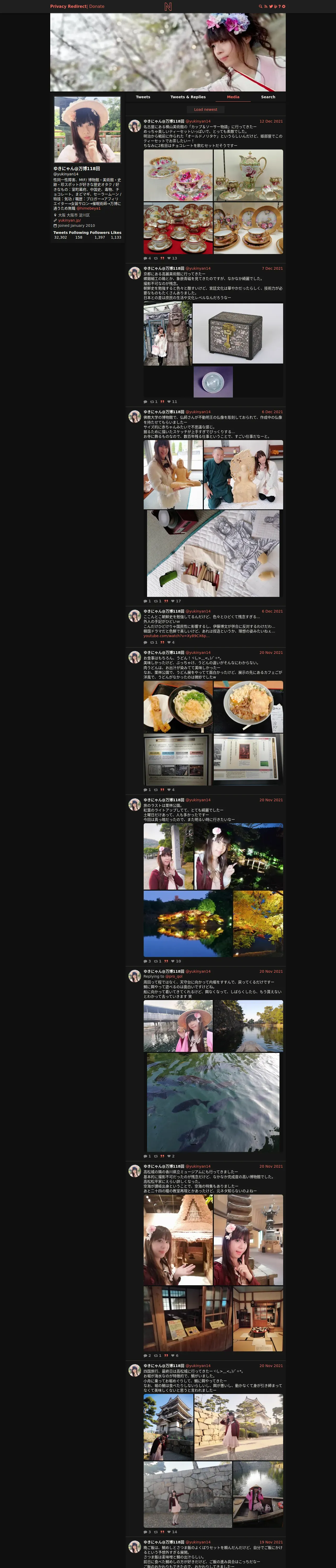https://nitter.privacyredirect.com:443/yukinyan14/media?cursor=DAABCgABG5DVfFj__UYKAAIUZggUdNqAAAgAAwAAAAIAAA