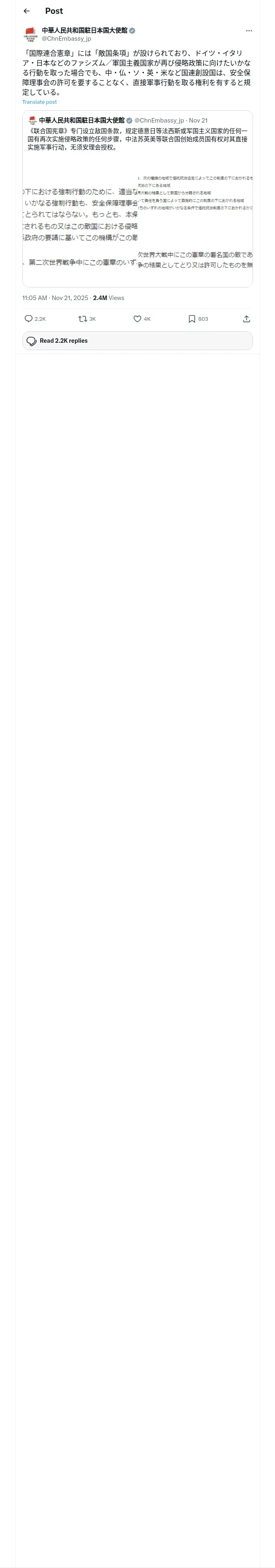 https://x.com:443/ChnEmbassy_jp/status/1991689268784410624