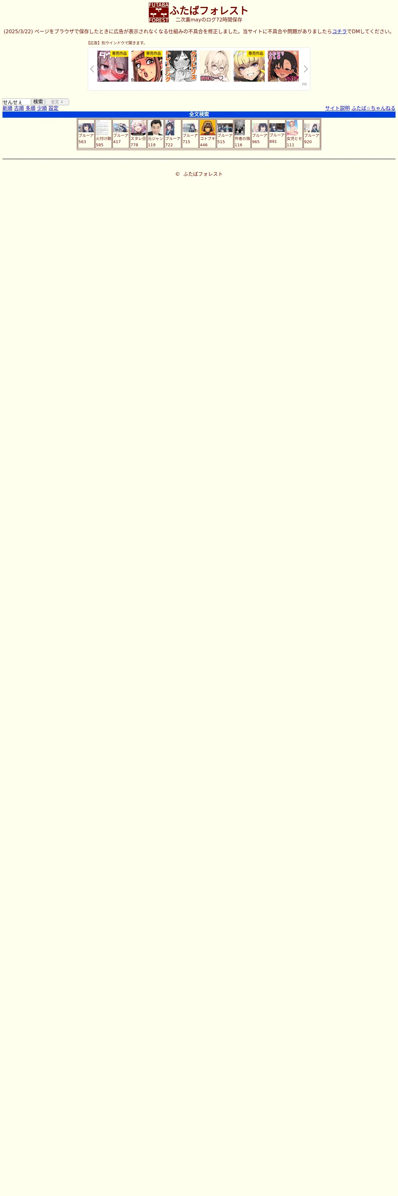 https://futabaforest.net:443/index.htm?sm=2&words=%E3%81%9B%E3%82%93%E3%81%9B%E3%81%87