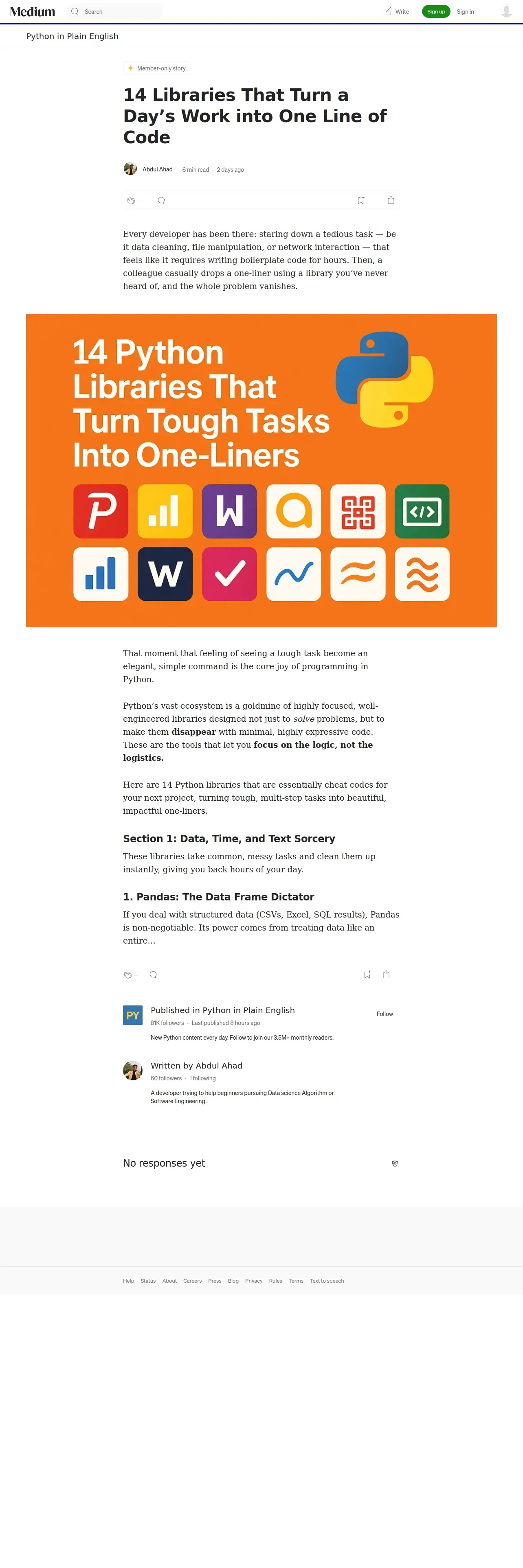 https://python.plainenglish.io:443/14-libraries-that-turn-a-days-work-into-one-line-of-code-9aa9297caecf