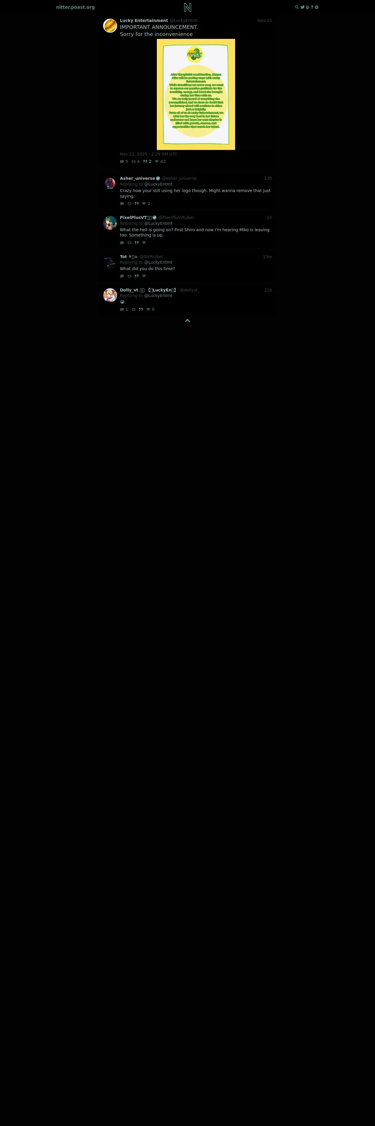 https://nitter.poast.org:443/LuckyEntmt/status/1992057944943595713