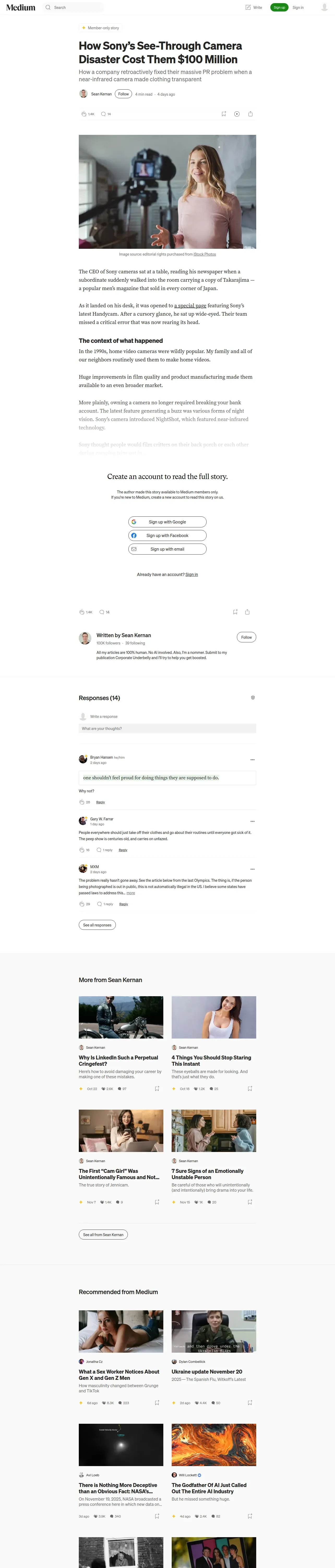 https://seanjkernan.medium.com:443/how-sonys-see-through-camera-disaster-cost-them-100-million-93fe39bfbd8a