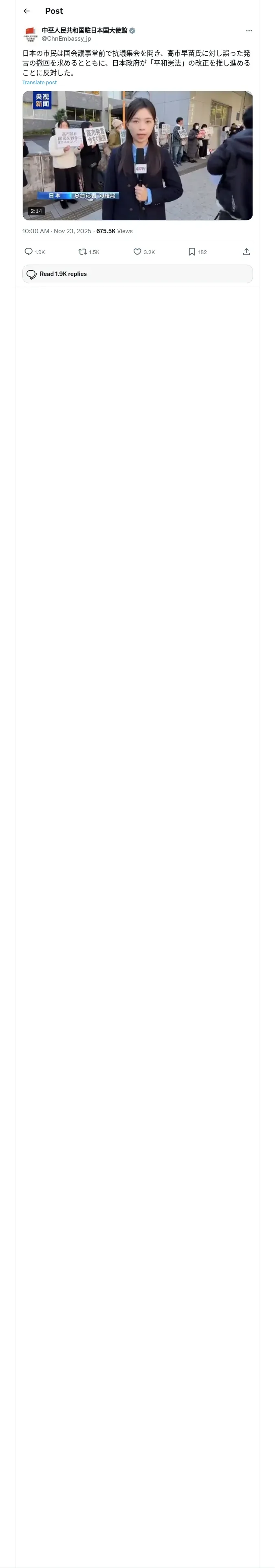 https://x.com:443/ChnEmbassy_jp/status/1992397691230499140