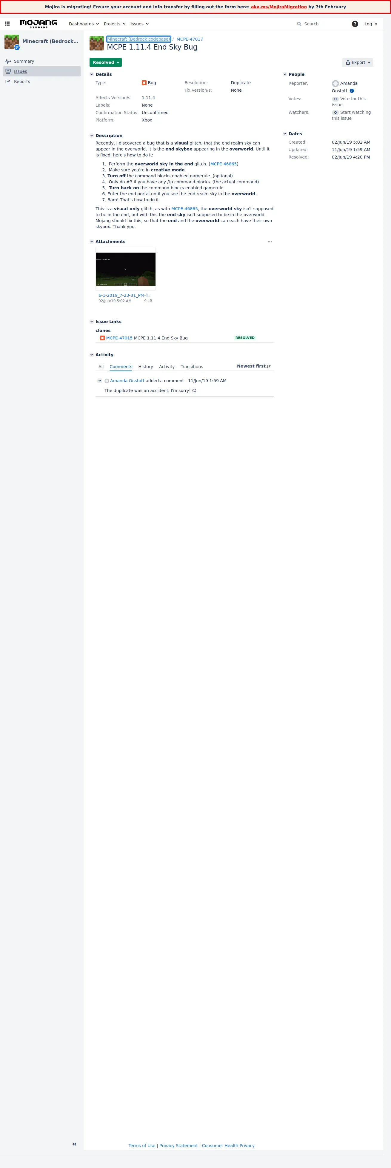 取得元URL: https://bugs-legacy.mojang.com:443/browse/MCPE-47017