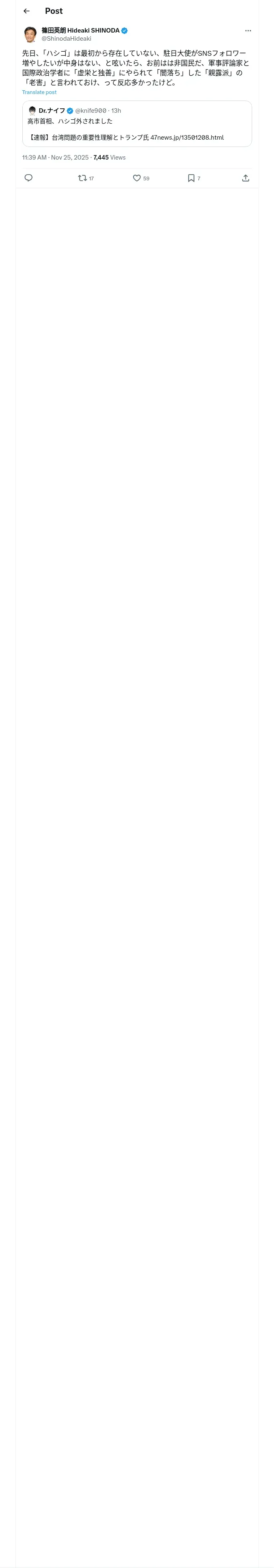 https://x.com:443/ShinodaHideaki/status/1993147389033714103
