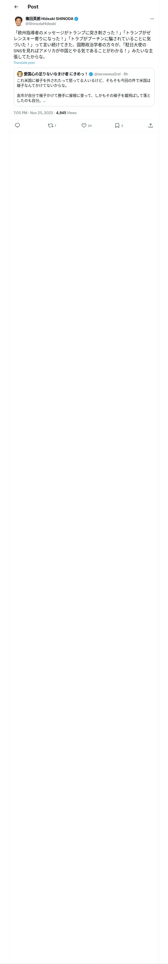 https://x.com:443/ShinodaHideaki/status/1993259688385974714