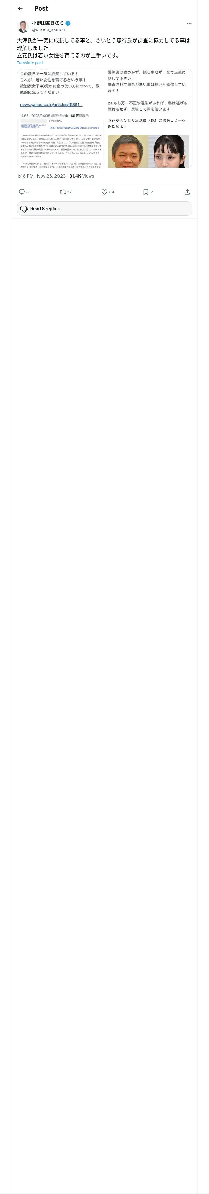 https://x.com:443/onoda_akinori/status/1728636946052952349