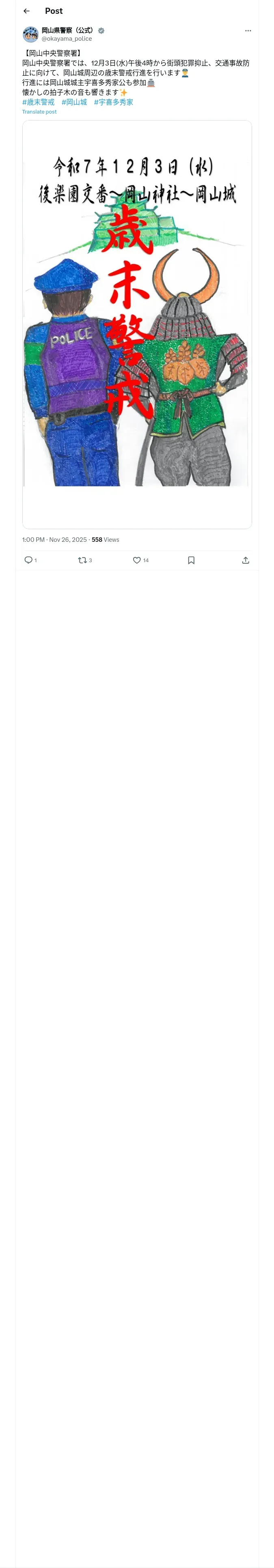 https://x.com:443/okayama_police/status/1993530154015244799