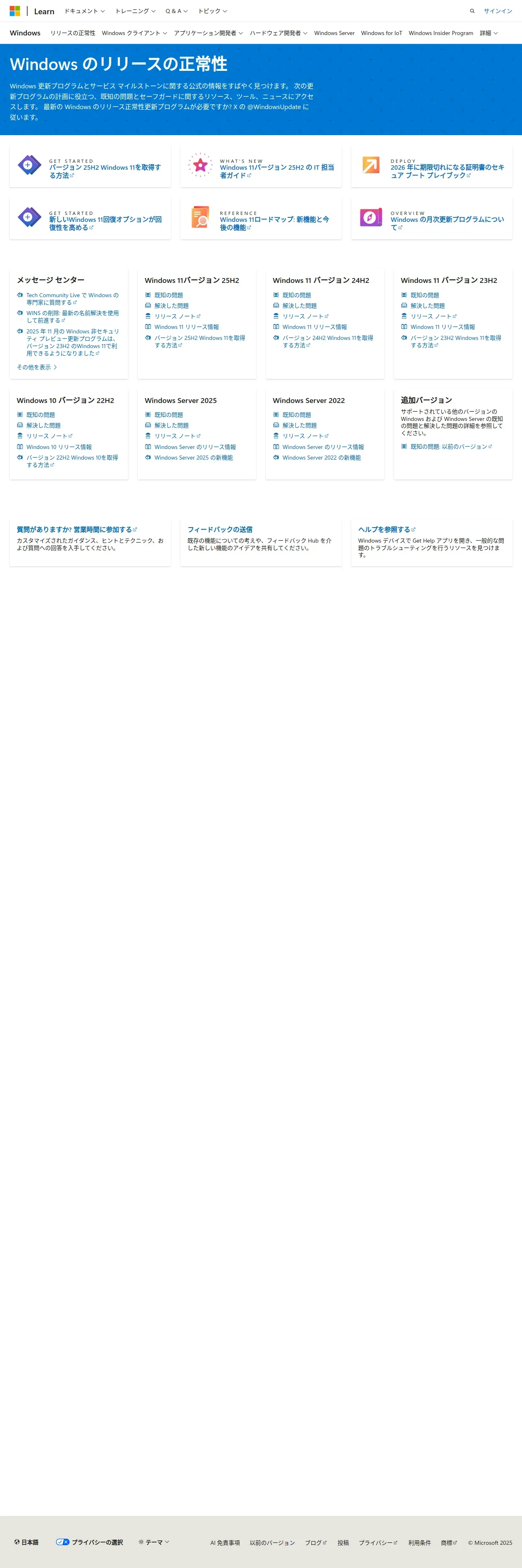 https://learn.microsoft.com:443/ja-jp/windows/release-health/