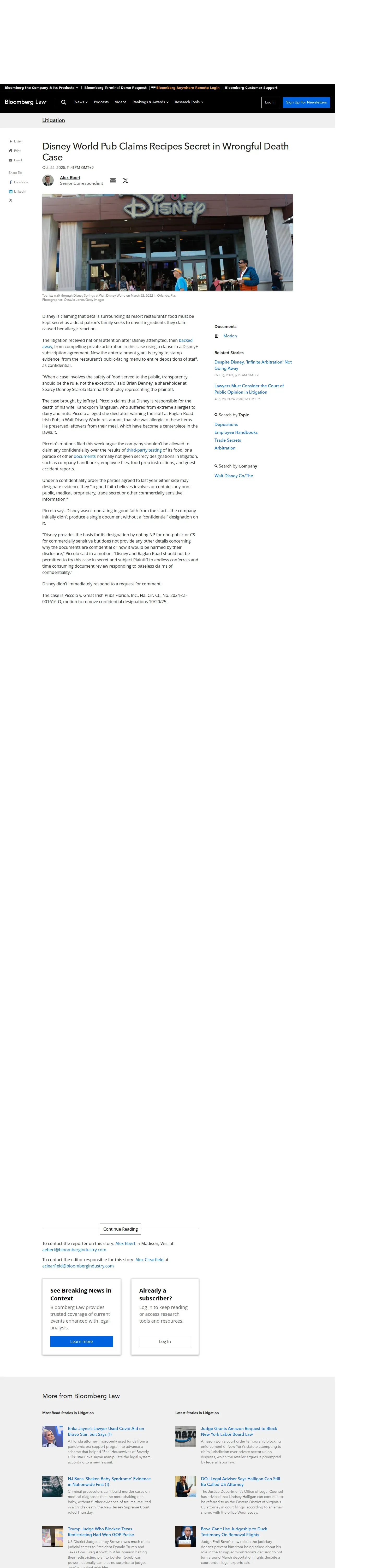 取得元URL: https://news.bloomberglaw.com:443/litigation/disney-seeks-to-keep-secret-details-of-its-restaurants-food