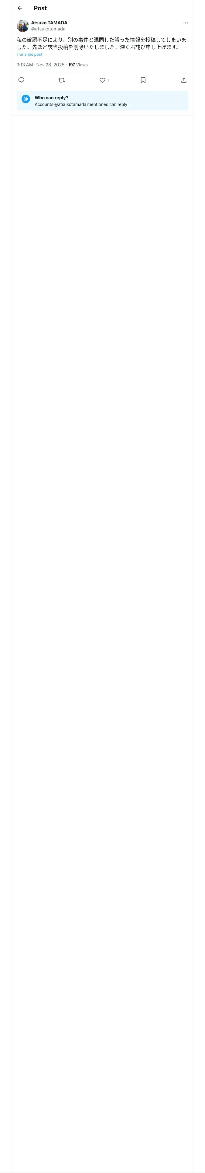 https://x.com:443/atsukotamada/status/1994197861320286500