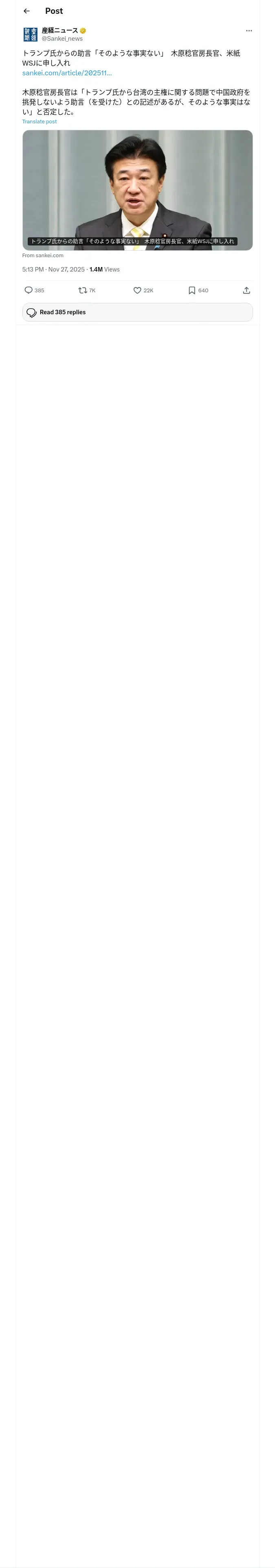 https://x.com:443/Sankei_news/status/1993956239798358206