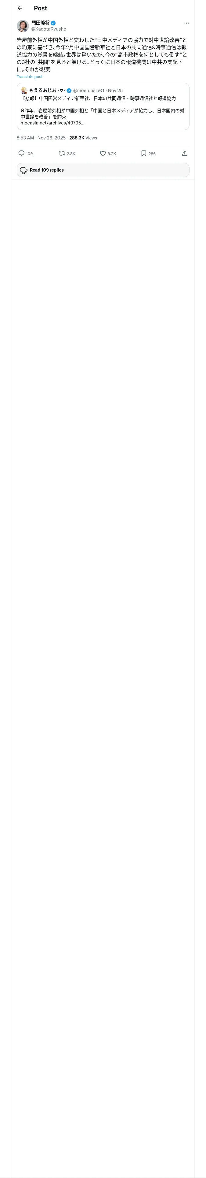 取得元URL: https://x.com:443/KadotaRyusho/status/1993468037547413570